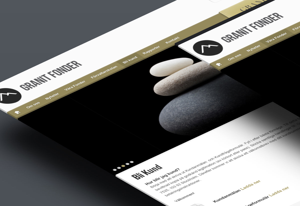 Granit Fonder is a Swedish independent fund management company specializing in actively managed funds. My mission was to design a fresh and clean new website that would follow their long term core brand strategy.