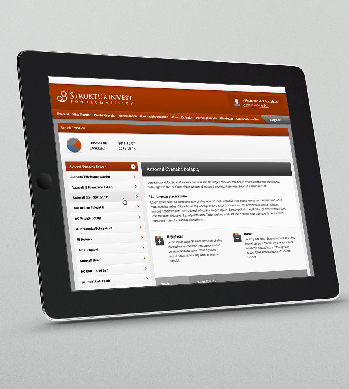 Strukturinvest Fondkommission is an independent specialist within the field of structuring and implementation of financial investment solutions. My mission was to design an administration tool for their clients.